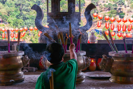 Chinese man in Kek Lok Si Temple on Penang island, Georgetown, Malaysia
