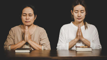 Christian life crisis prayer to god. Woman Pray for god blessing to wishing have a better life. woman hands praying to god with the bible. begging for forgiveness and believe in goodness.