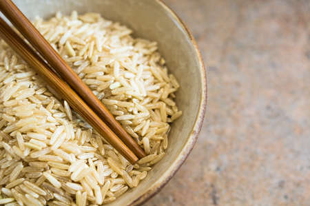 Close up of long grain brown rice,