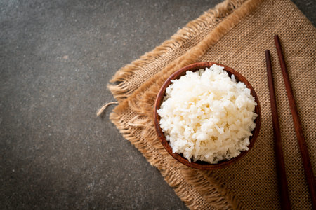 cooked Thai jasmine white rice bowl