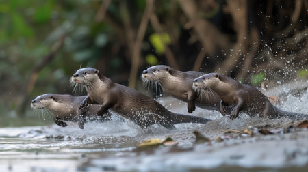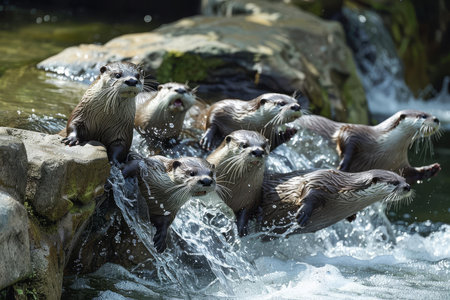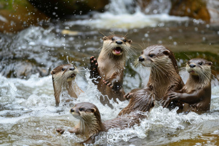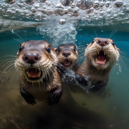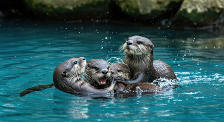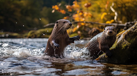 Generative AI Playful otters frolicking in a river.