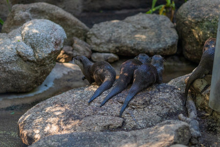 Group of oriental small-clawed otter (Amblonyx cinereus), also known as the Asian small-clawed otter.