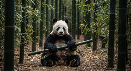 Panda eats bamboo in the forest