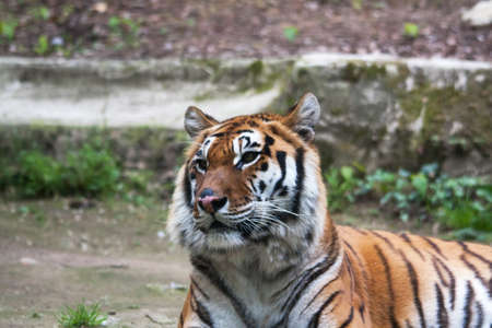 Close up of a tiger in the zoo. (Panthera tigris altaica)