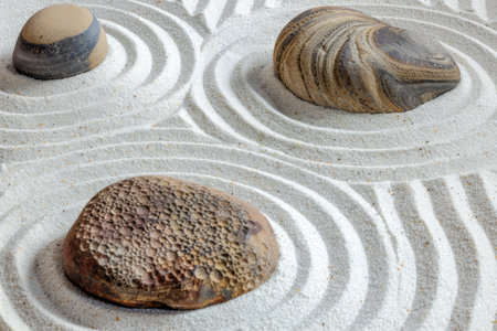 Tranquil Zen Garden with Smooth Stones on Raked Sand