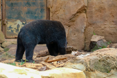 Sun bear with the Latin name Helarctos malayanus is black in a zoo cage