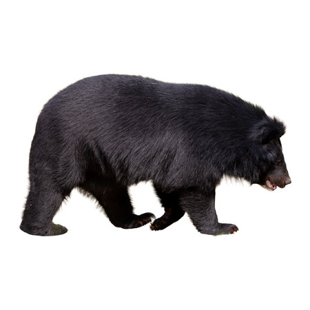 asiatic black bear walking isolated on white background