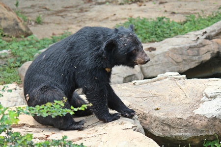 Asiatic black bear relaxing on the rock