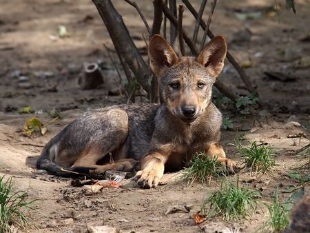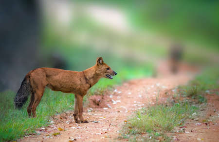 Indian wild dog in its natural habitat, with ample copy space