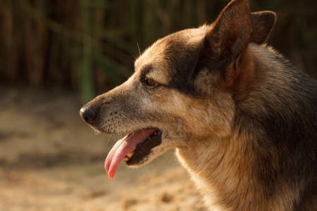 Portrait of a mongrel dog in nature.