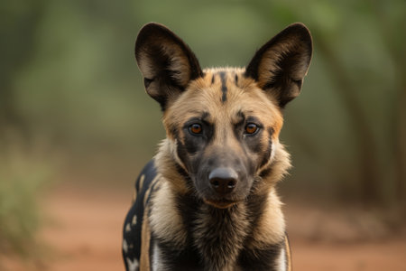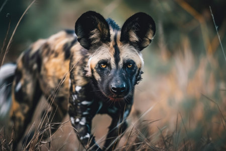 Close up of a wild African dog sprinting. Generative AI