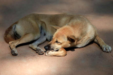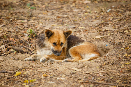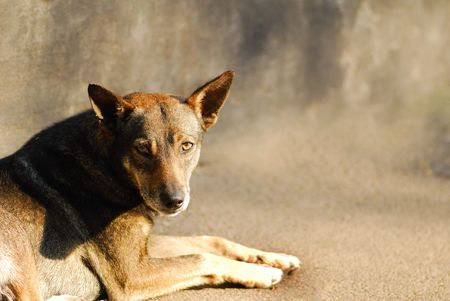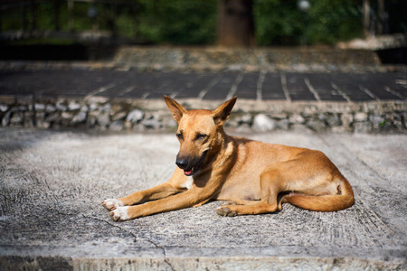 Tired dog on the stone, Thailand
