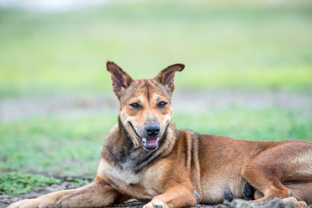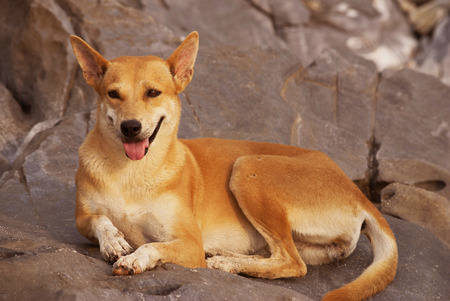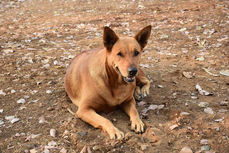 Indian dog resting on dry ground