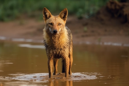 Black backed jackal (Canis mesomelas) standing in water