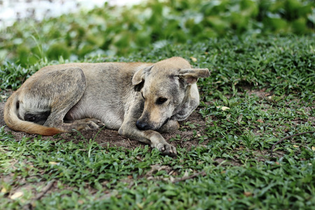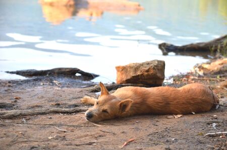 Dogs have no boss lying By the water canal and lonely.