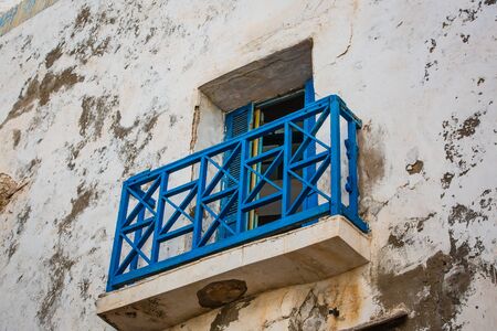 Detail of house in Essaouira, Morocco. Typical Moroccan blue.