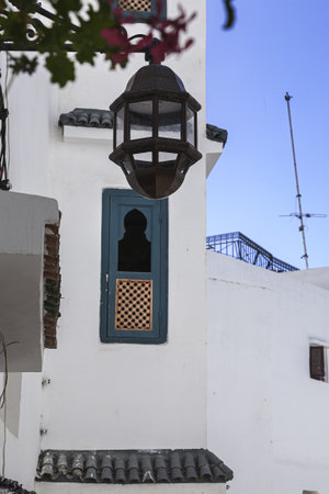 Arab architecture in the old medina. Streets, doors, windows, details. Tangier, Morocco