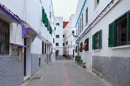 View of the one of the old streets in the historical part of Tangier in Northern Morocco.