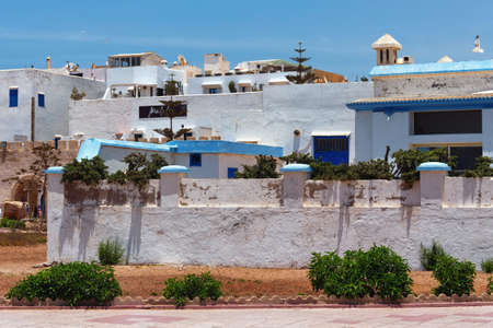 ESSAOUIRA, MOROCCO - JUNE 09, 2017: View of the old tipical buildings of the Essaouira on a sunny summer day.