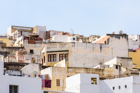 TETOUAN, MOROCCO - MAY 24, 2017: View of the typical old residential buildings of Tetouan (Northern Morocco) in historical center of the city.