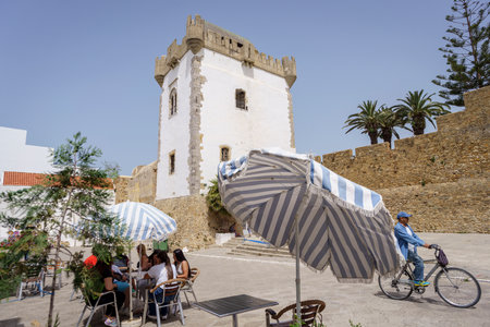 Beautiful promenade on the city wall of the ancient white city Asilah in Morocco