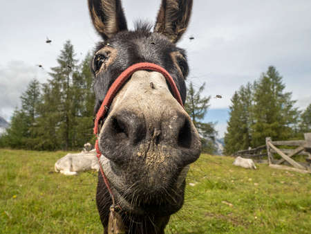 Donkey nose infested with a lot of fly