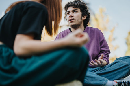 Young couple having a serious conversation outdoors