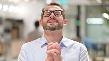 Man Expressing Hope and Pleading Gesture with Hands Clasped