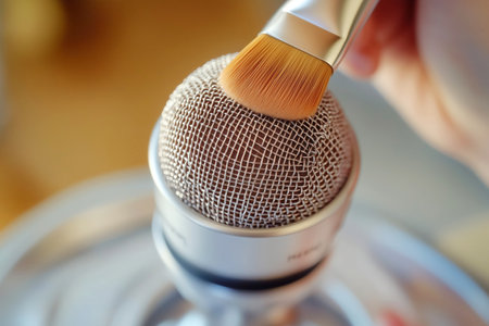 Soothing ASMR concept: soft brush strokes on a mic creating calming sounds for stress relief.
