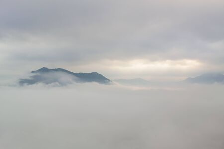 Morning sunrise and foggy of mountain in Korea.