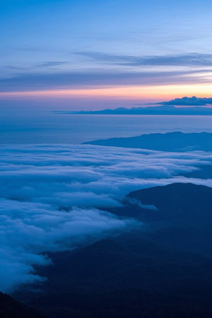 View of the sea of ​​clouds from the mountaintop