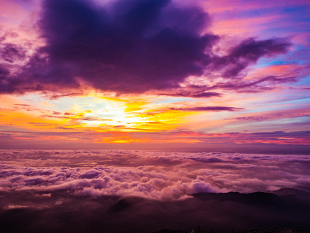 Beautiful Sunrise Sky with Sea of the mist of fog in the morning on Khao Luang mountain in Ramkhamhaeng National Park,Sukhothai province Thailand
