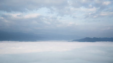 Natural landscape of mountains and sea of mist in the winter season,Thailand