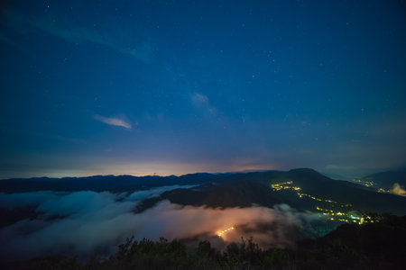 Galactic Serenity: Nighttime Skyline at the Mountain Summit. The starry sky in summer on the top of the mountain in New Taipei City.