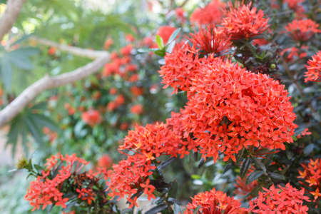 Red Ixora flower in garden, Thailand. (Ixora chinensis)