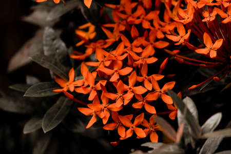 The beauty of the Chinese ixora flower in full bloom. This plant has the scientific name Ixora chinensis.