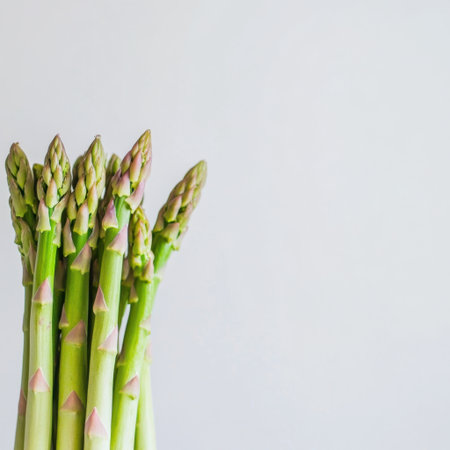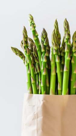 This image showcases a vibrant bunch of fresh green asparagus against a light background. Perfect for promoting healthy eating, cooking, and gourmet recipes.