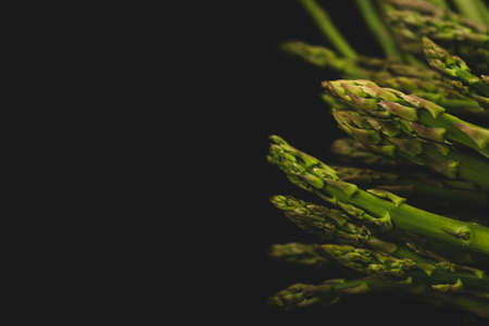 Fresh organic green asparagus isolated on black background. closeup shot