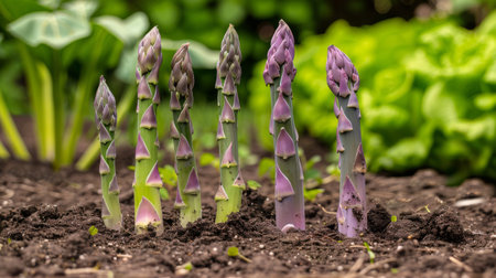 Purple Asparagus in a Garden of Green Plants