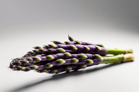 purple asparagus on a white background, food closeup