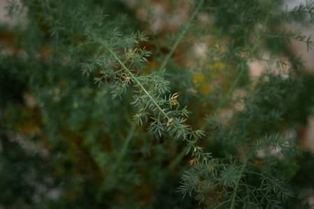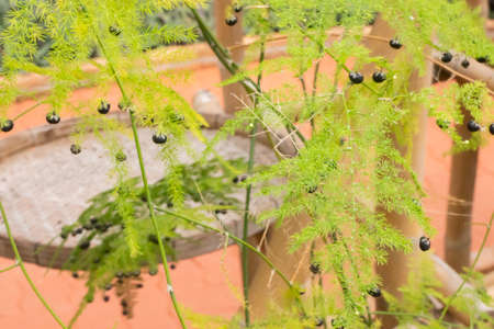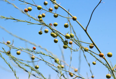In summer, fruits ripen on asparagus stems (Asparagus officinalis)