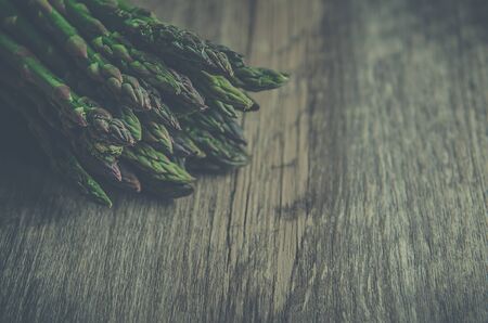 Fresh green spring asparagus on a wooden background. Asparagus season