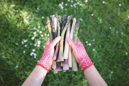Bunch of asparagus with hands