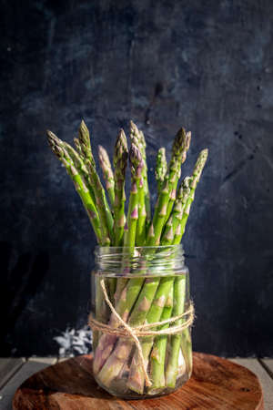 healthy green asparagus on rustic black background
