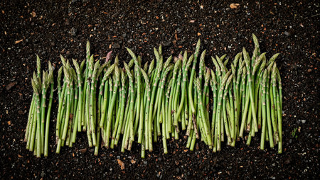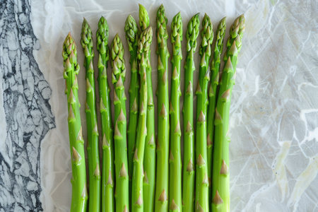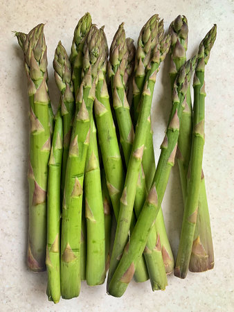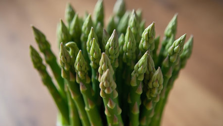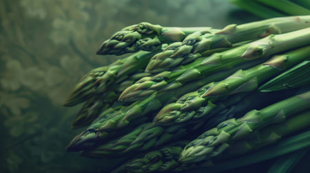 a bunch of fresh asparagus stalks neatly aligned, showcasing their green hues and tight, closed tips, which indicate freshness