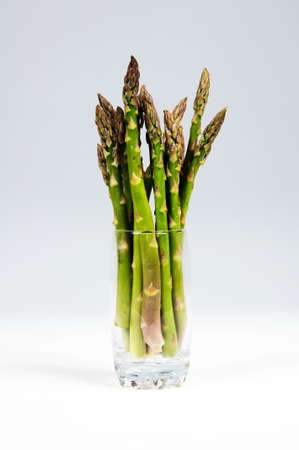 Fresh raw asparagus in a glass, Andalucia, Spain, Western Europe.
