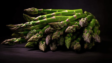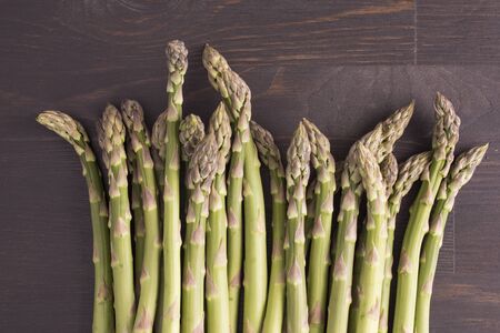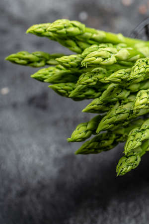 Asparagus. bunch of fresh asparagus. banches of fresh green asparagus on dark background, Pickled Green Asparagus. close up. vertical image. place for text.