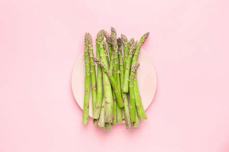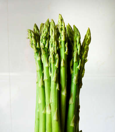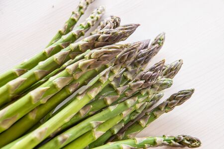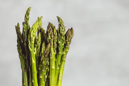 Stalks of fresh green asparagus on a light background. Healthy food concept