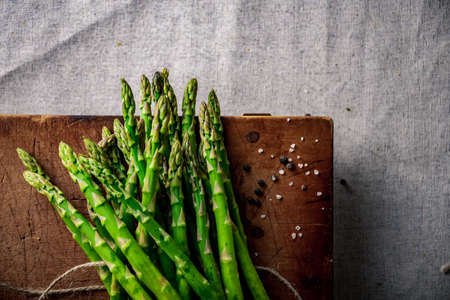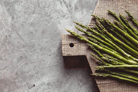 Asparagus on a cutting board. Healthy food, health on a concrete background.
