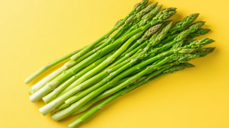 Fresh Green Asparagus Spears Isolated on a Yellow Background, Vibrant and Healthy Food Photography